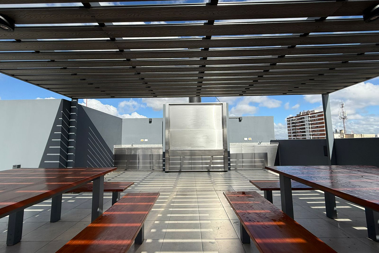 Las amplias cocheras se sitúan en subsuelo y planta baja, donde también se ubica un local comercial a la calle. En la terraza se encuentra un cómodo solarium con parrilla.